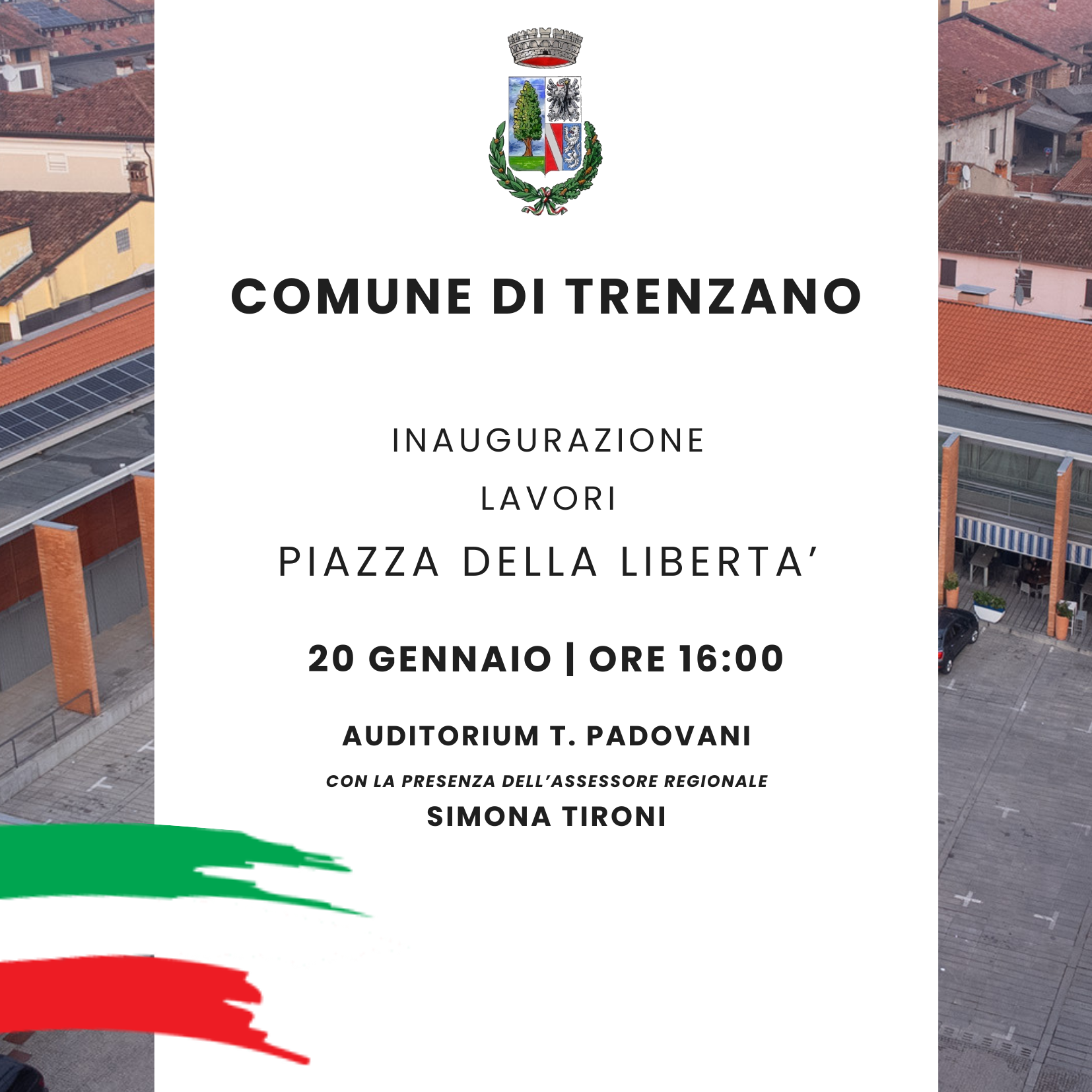 Si pubblica l'invito alla cittadinanza a partecipare alla cerimonia di inaugurazione dei lavori di riqualificazione di Piazza Della Libertà.