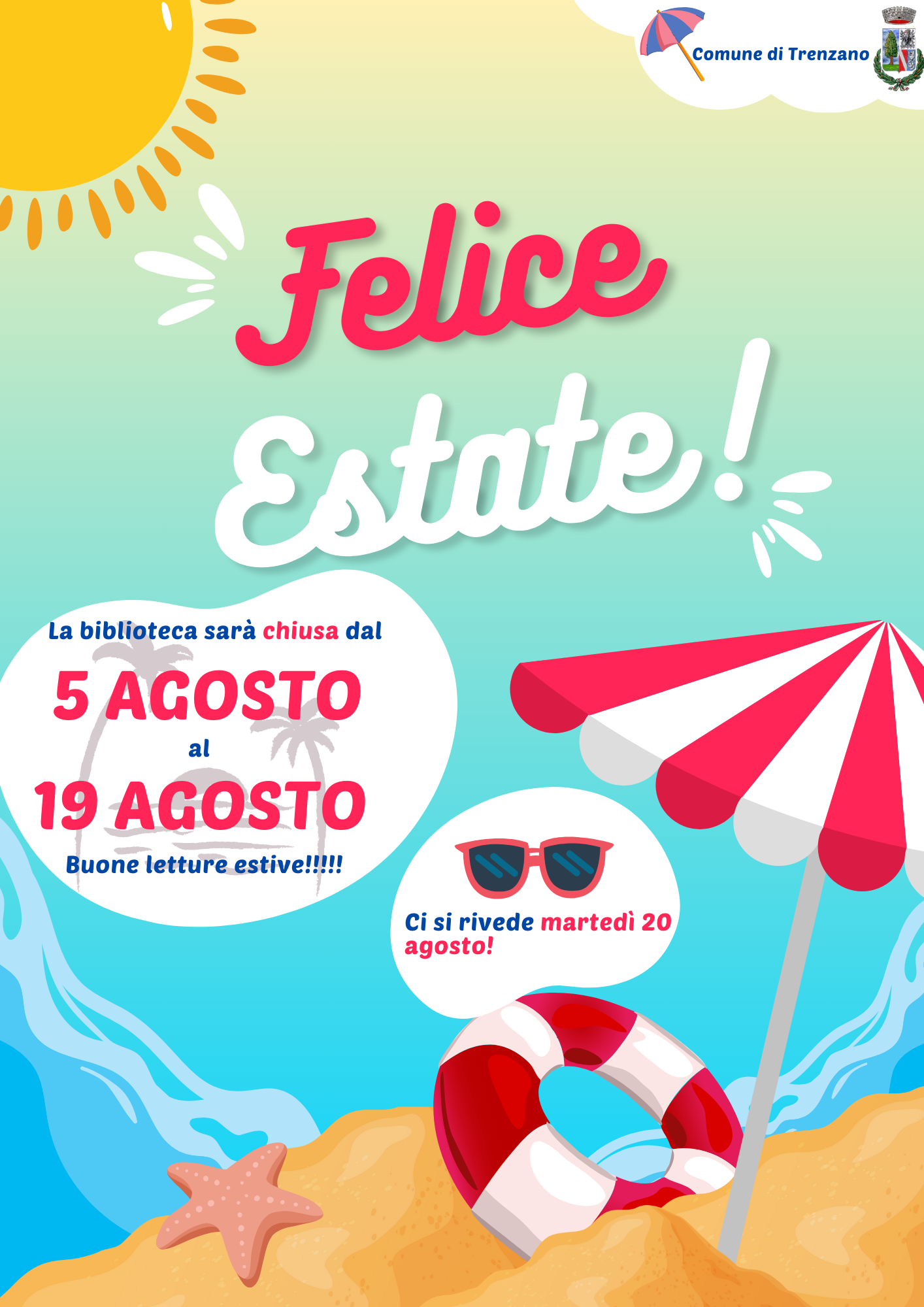 Si informa che la biblioteca comunale resterà chiusa al pubblico dal 5 al 19 agosto (riapertura dal 20 agosto p.v.).