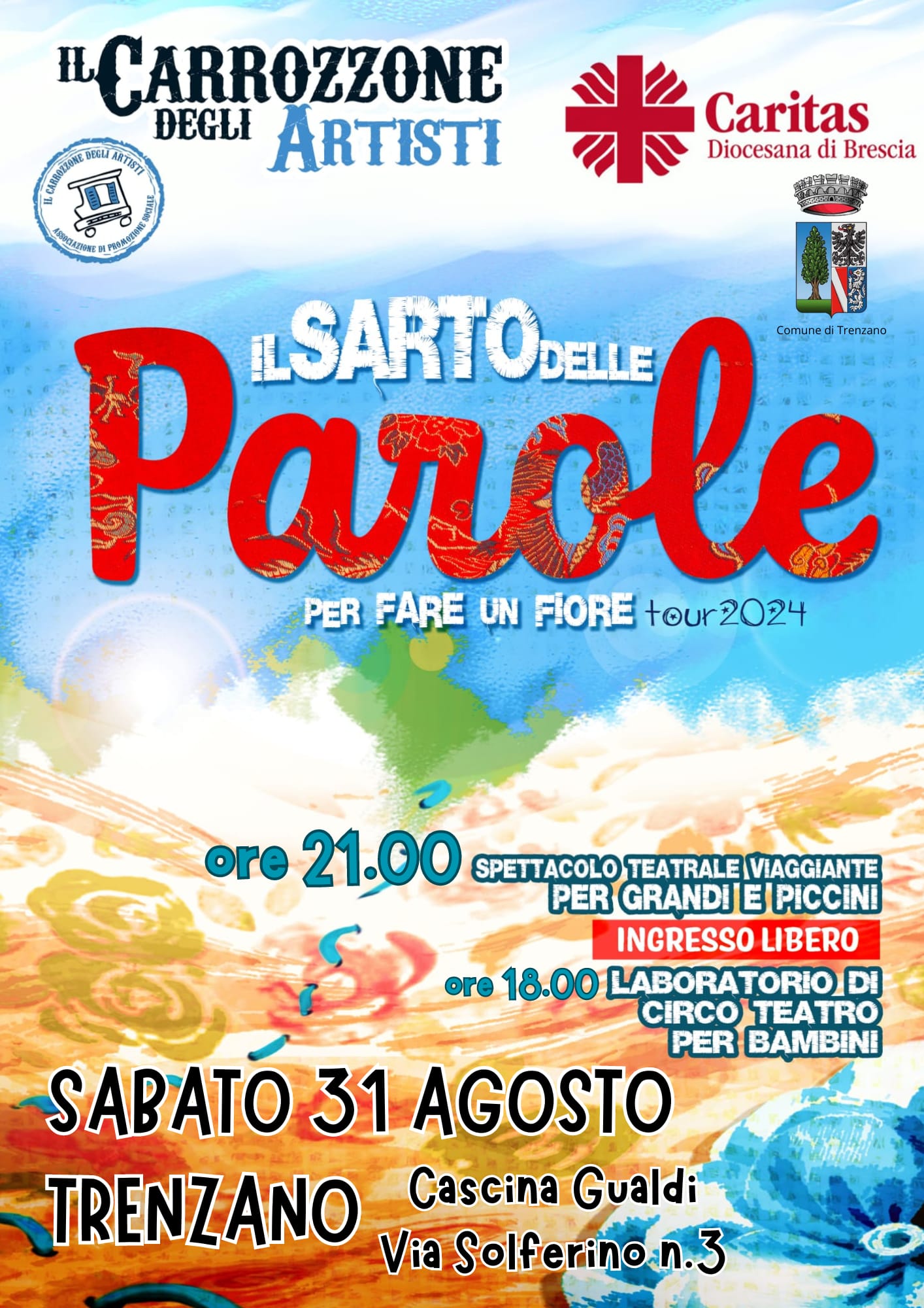 Si pubblica la locandina dello spettacolo teatrale "Il Sarto delle Parole" in programma alla Cascina Gualdi di Via Solferino il prossimo 31 agosto alle ore 21.00.